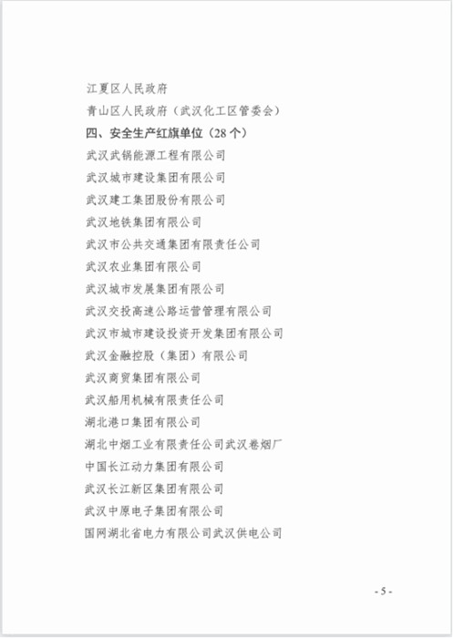 2月23日,武漢市安委會印發了“”2022年度全市安全生產工作考核情況的通報”,武漢交投高速公路運營管理有限公司榮獲“安全生產紅旗單位”。
