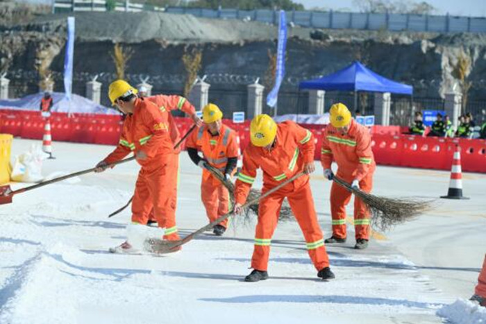 此次演練包括兩大項目,分別為模擬連續陰雨天氣,導致高速道路濕滑的情況;交通事故應急處置演練。本次演練出動了融雪劑撒布車、鏟雪車、防撞緩沖車、安全警戒車等多臺設備,交警、路政、應急搶險人員、施救人員30人在歷時近1個小時的演練過程中,積極“參戰”,以最快的速度和最高的效率,科學有序地完成了除雪保暢和交通事故應急處置任務,達到演練目的。