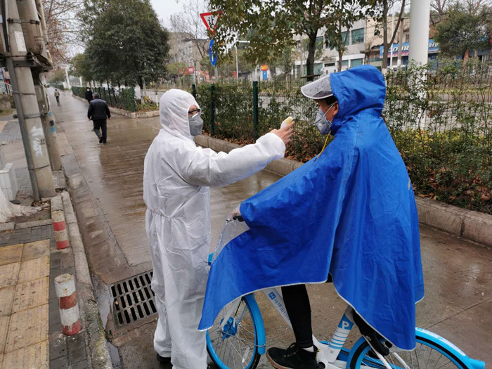 自相關工作開展以來,集團突擊隊員主動請纓,全身心投入到社區疫情防控最前沿。2月10日,陰雨連綿,集團突擊隊員馬伊佳、王茂榮一早便主動與社區人員進行工作對接,拿上廣播喇叭、消毒液噴壺、體溫槍等工具,按照社區工作安排,積極開展愛心蔬菜分發、體溫監測、防疫宣傳等工作。
