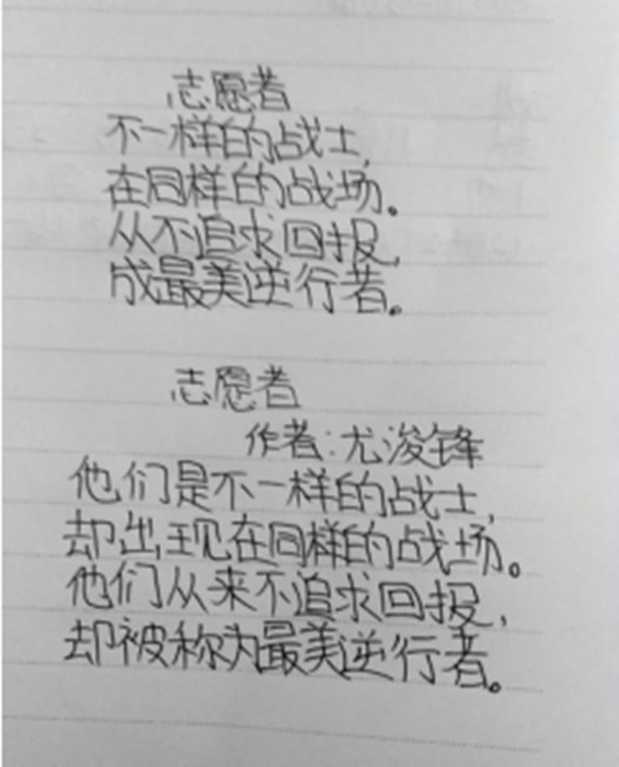 10歲小侄孫寫的小詩給予汪幫平強大精神力量