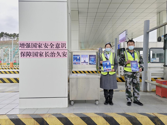 集團所屬高速公路運營黨支部組織全體黨員專題學習了習近平總書記關于總體國家安全觀的重要論述,學習了安全生產方面的專業知識。集團所轄各高速公路收費站所通過高速公路LED情報板循環播放國家安全教育知識宣傳標語,在收費廣場設立“安全普法知識宣傳臺”,在站所營區布設宣傳展板,向收費現場過往司乘發放宣傳資料千余份,累計解疑上千條等形式,全面營造了維護國家安全和社會安全的良好氛圍。
