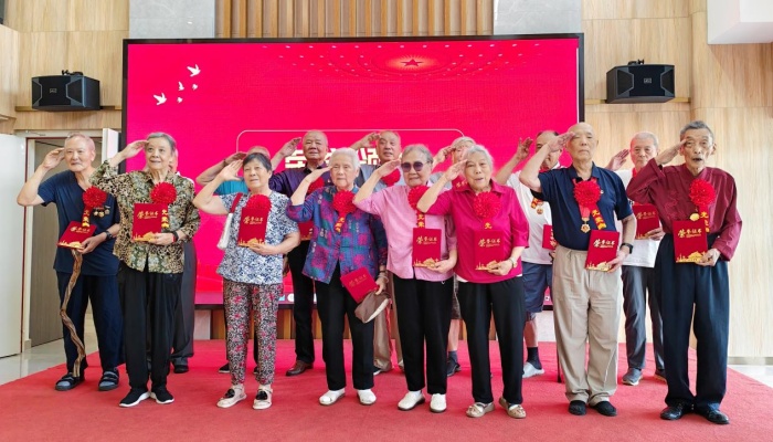 為紀念中國人民抗日戰爭暨世界反法西斯戰爭勝利80周年,傳承紅色基因,弘揚偉大抗戰精神,9月3日,康養黨支部以“薪火傳承・砥礪初心”為主題,舉辦系列活動。園區革命老兵、黨員齊聚一堂,通過聆聽紅色故事、感悟榜樣力量、重溫歷史瞬間,接受深刻的精神洗禮與思想淬煉。