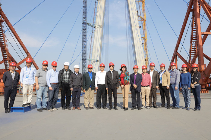 代表團(tuán)一行觀看了青山長江公路大橋宣傳視頻,聽取了青山橋整體設(shè)計(jì)與建設(shè)進(jìn)度方面的匯報(bào),參觀了鋼箱梁焊接及斜拉索安裝等施工現(xiàn)場(chǎng)。代表團(tuán)成員對(duì)青山橋項(xiàng)目在設(shè)計(jì)與建設(shè)方面取得的成果給予了高度評(píng)價(jià)。