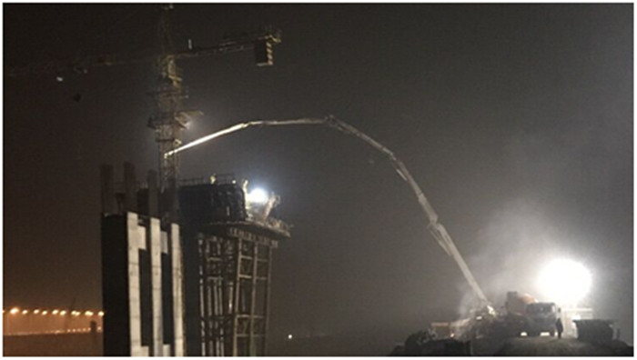 最后一泵混凝土輸送至26米的高空
