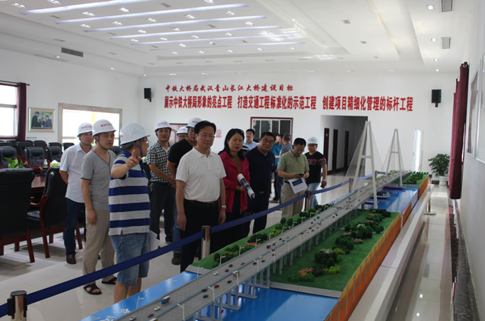 2018年7月25日下午,武漢市發改委主任許甫林一行深入交投集團青山長江大橋施工現場,調研項目建設情況,市交委副主任賀敏、交投集團青山橋項目負責人付曉鵬陪同調研。