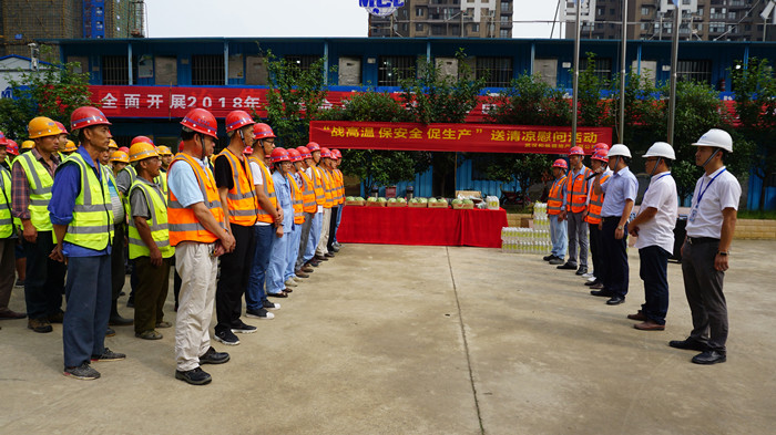 7月25日,集團總工程師王愛民帶隊向堅守在北四環線建設一線的員工表示了誠摯的敬意和親切的慰問,并結合安全生產工作要求,進一步就防暑降溫工作提出了明確的指導意見,要求各單位持續關注氣溫和水位變化,把防暑降溫、防汛抗旱工作落到實處,切實保障廣大一線建設者的身心健康;
