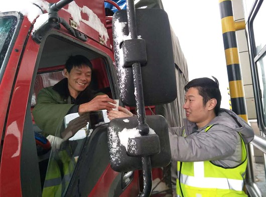 自12月30日凌晨開始,武漢交投集團運營公司各收費站主動為過往司乘人員免費提供熱水、姜汁可樂等,暖心服務與天寒地凍的大雪天形成強烈對比,與過往司乘在冰天雪地中架起了一座座“暖心橋”,進一步展現武漢交投集團國企擔當。