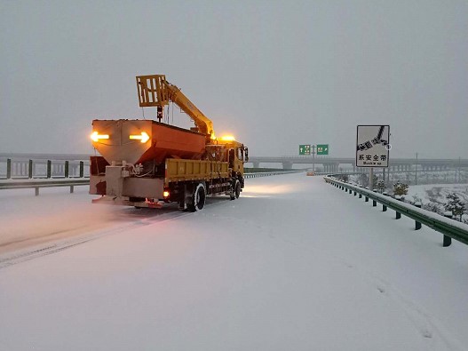 “雪情就是命令”!養護單位接收到指令后,立即啟動除雪保暢應急預案,迅速投入人力、物力開展除雪保暢工作。組織人員有針對性的對特大橋梁、彎道長上下坡進行重點巡查,了解路面、橋梁積雪厚度。隨著降雪范圍及雪量增大,為防止路面結冰,養護單位在下雪初期進行小劑量融雪劑撒布。撒布車、鏟雪車不間斷進行除雪保暢作業,做到人歇機不歇,全力確保轄區道路安全、暢通。