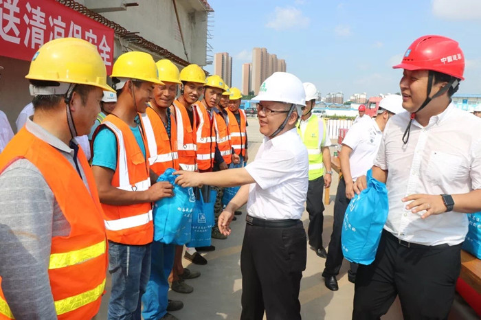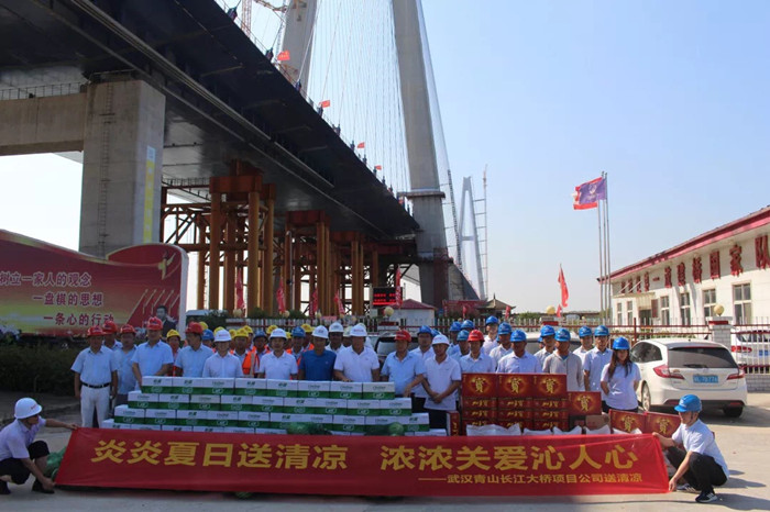 青山橋公司開展“炎炎夏日送清涼,濃濃關愛沁人心”為主題的“送清涼”活動。在青山長江大橋施工現場,公司總監李朝陽、總經理助理胡永勝把防暑降溫用品送給一線產業工人手中,將關懷送到全體員工心里;