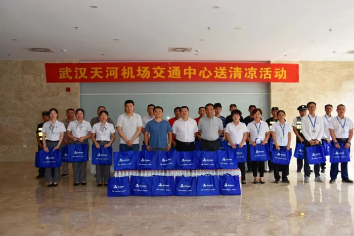 天河機場交通中心公司負責人來到交通中心各服務點,為高溫下堅守崗位的工作人員送上防暑降溫用品,并向全體干部員工表達了親切的慰問和誠摯的感謝,鼓勵大家立足服務“小窗口”,展現企業發展“大作為”,以良好的精神面貌迎接世界軍人運動會的到來。
