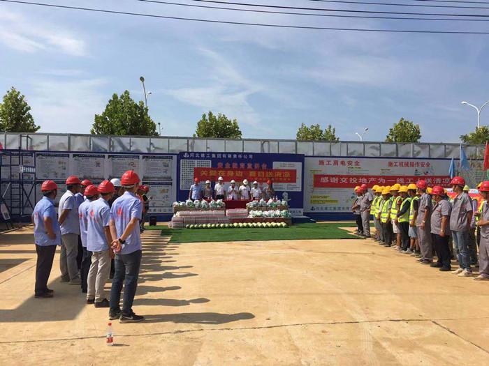 集團總經理助理、東、西四環公司總經理王先強帶領公司各部門負責人深入東四環線高速公路施工現場開展以“不忘初心謀發展、夏送清涼保安全”為主題的慰問活動,向奮戰在建設一線的產業工人們表達了最親切的問候,并要求各單位各部門高度重視防暑降溫工作,積極采取有效措施,改善一線職工勞動條件,加強施工現場的安全管控,確保項目建設平穩有序;