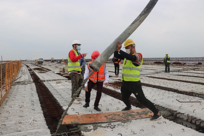東四環線高速公路項目有序復工。3月26日下午3點28分,交投集團東四環線高速公路項目進行復工后首次混凝土澆筑,本次澆筑為東四環線第三標段跨綠色路右幅第1聯橋面系混凝土施工。為盡快復工生產,東四環公司加強與地方政府協調對接,及時制定復工方案,第一時間制定新冠肺炎疫情防控方案和應急預案,開通返崗復工接送專車,有效解決人員返崗、交通保障、材料供應等方面困難,目前員工到崗率100%。