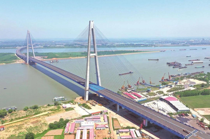由武漢交投集團牽頭投資建設的青山長江大橋全長7548米,雙向8車道,另預留2車道,設計時速100公里,不設收費站。在我國眾多“高手林立”的橋梁中,這座橋依然創造了多項紀錄——大橋主跨938米,是目前世界上跨度最大的全漂浮體系斜拉橋;橋面寬48米,是目前跨越長江橋面最寬的橋梁;主塔高279.5米,是目前世界上最高的“A”型塔。