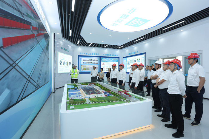與會人員現場參觀了武漢都市圈環線高速公路漢南長江大橋及接線工程7標智慧梁廠。該智慧梁廠占地面積210畝,梁場平面規劃“2站2中心5區域”,是漢南長江大橋及接線工程全線首個智慧梁廠,力求打造現代綜合智慧梁廠建設典范。廠內設置10條智能生產線,承擔全線5135榀箱梁預制任務,同時配備最新一代智能可移動臺車、智能模板、智能數控蒸養等先進設備,形成環形流水生產線,全流程自動化作業,每片梁生產時間從9天可縮減至4天,相比傳統梁廠效率提高60%。
