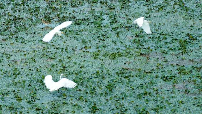 九月的斧頭湖,水光瀲滟,藍天白云。由武漢城發集團所屬交投集團投資建設的武漢都市圈環線漢南長江大橋及接線工程斧頭湖一號高架橋工地旁,成群白鷺翩然舞動在水面:它們時而掠過鋼棧橋與墩體,時而棲息于橋邊水草,潔白的羽翼倒映在碧波之上,構筑了一幅工業文明與自然生態和諧共生的生動圖景。這并非偶然的風景,而是項目團隊踐行生態承諾的無聲勛章。